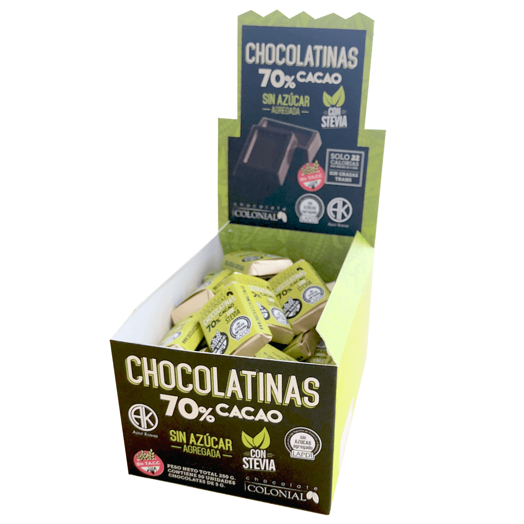 CHOCOLATINA 70% CACAO CON STEVIA cantidad